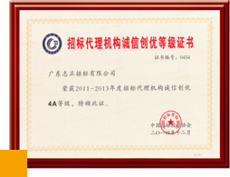 招標(biāo)代理機(jī)構(gòu)誠(chéng)信創(chuàng)優(yōu) 4A 等級(jí)