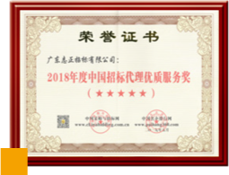 2018 年度中國(guó)招標(biāo)代理優(yōu)質(zhì)服務(wù)獎(jiǎng)(五星)