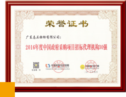 2016 年度中國(guó)政府采購(gòu)項(xiàng)目招標(biāo)代理機(jī)構(gòu) 30 強(qiáng)