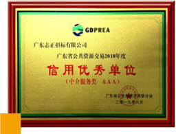 廣東省公共資源交易 2018 年度信用優(yōu)秀單位(AAA 級(jí))